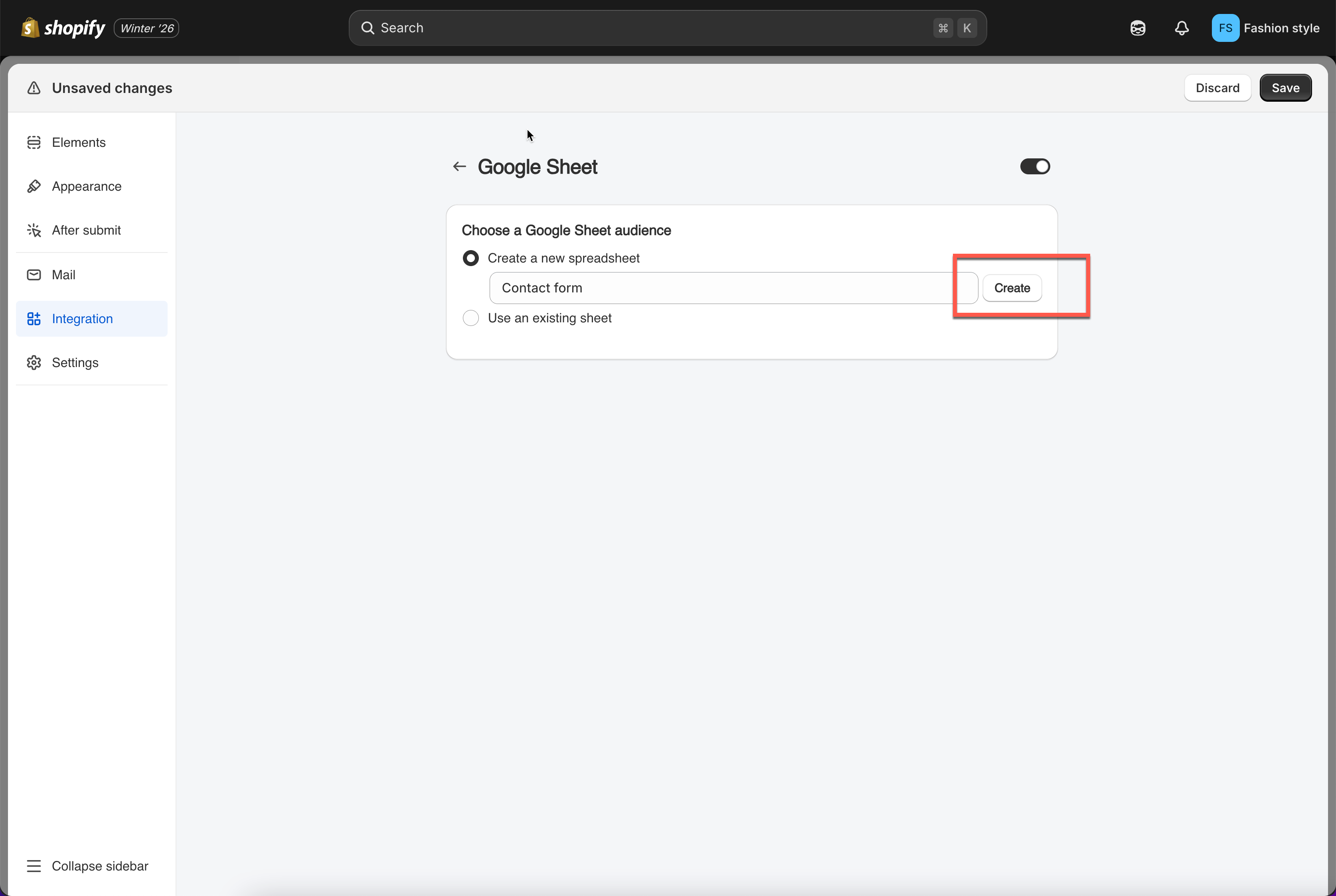 Type `Contact Form` to create a new spreadsheet with this name. A new file will be generated automatically inside your Google Sheets.