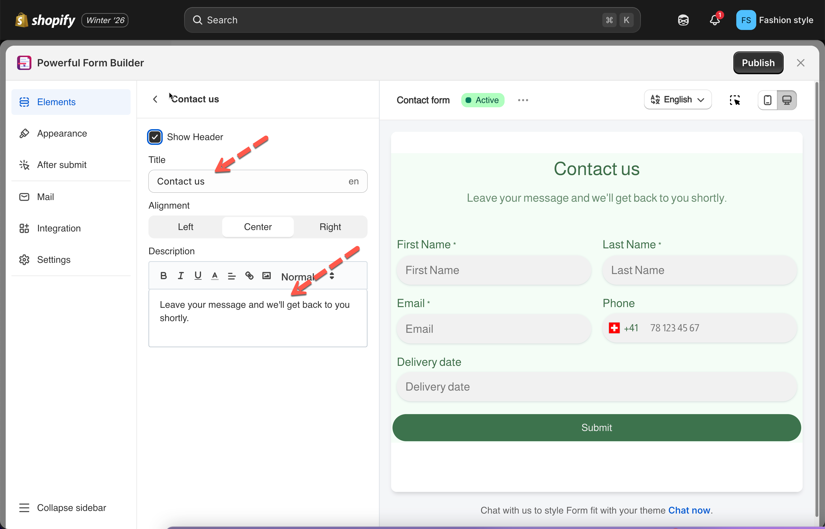 Change form Title and Description