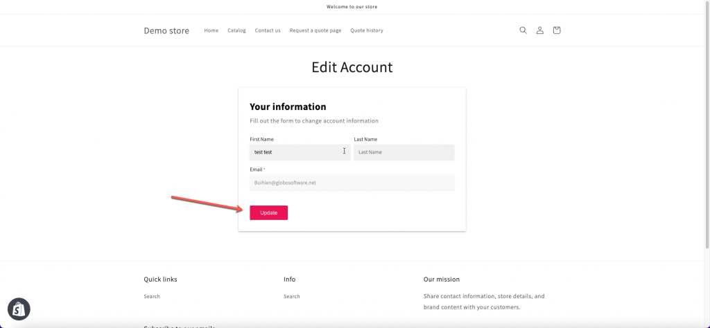 Changes made by customers will update their Shopify customer profile directly.